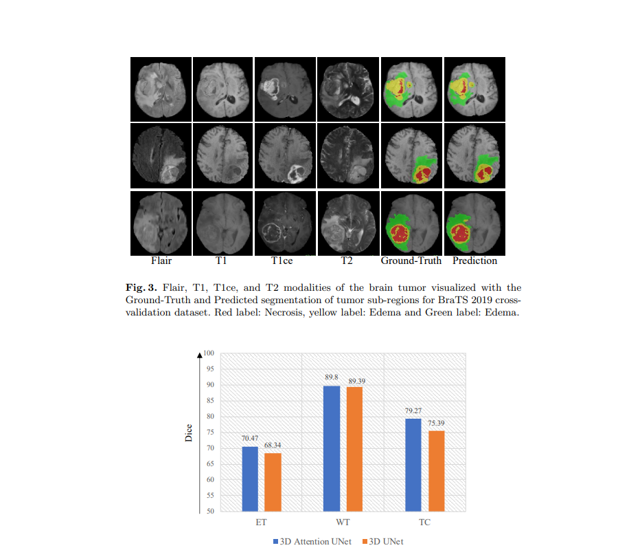 - đź§ 3D Attention UNet Architecture: Integrates attention gates into UNet3D to suppress irrelevant regions and enhance tumor-focused feature learning.