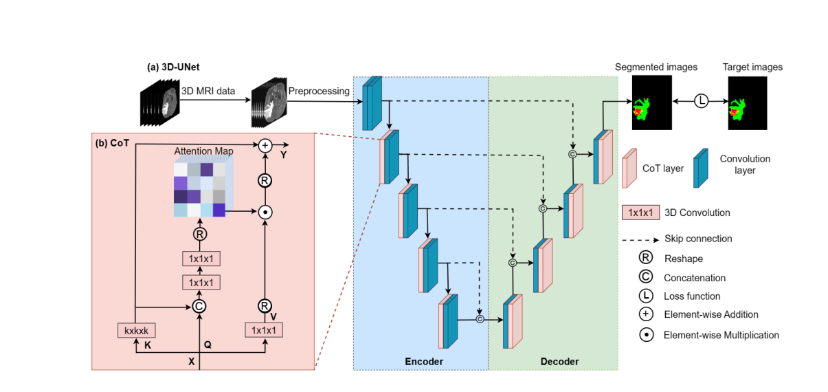 - Encoder–Decoder UNet3D Backbone: Captures hierarchical spatial features from volumetric MRI inputs.